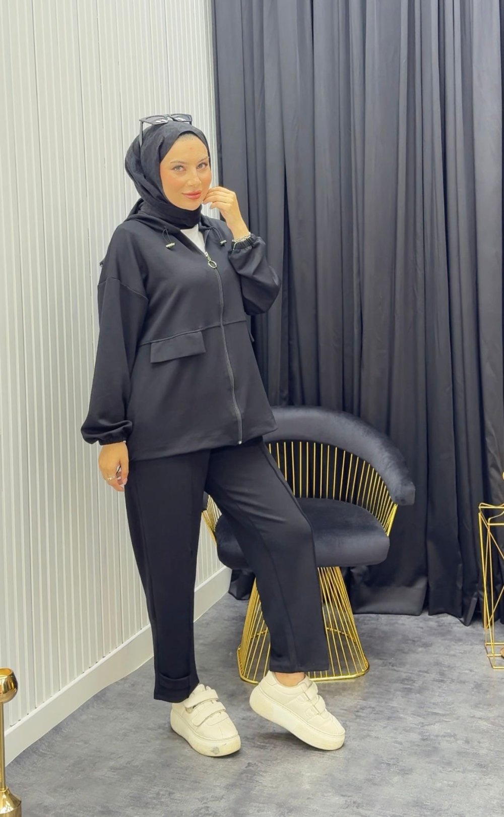 Tunik boydan fermuarlı, kapüşonlu ve cep kapaklıdır(Cep işlevli değildir.).