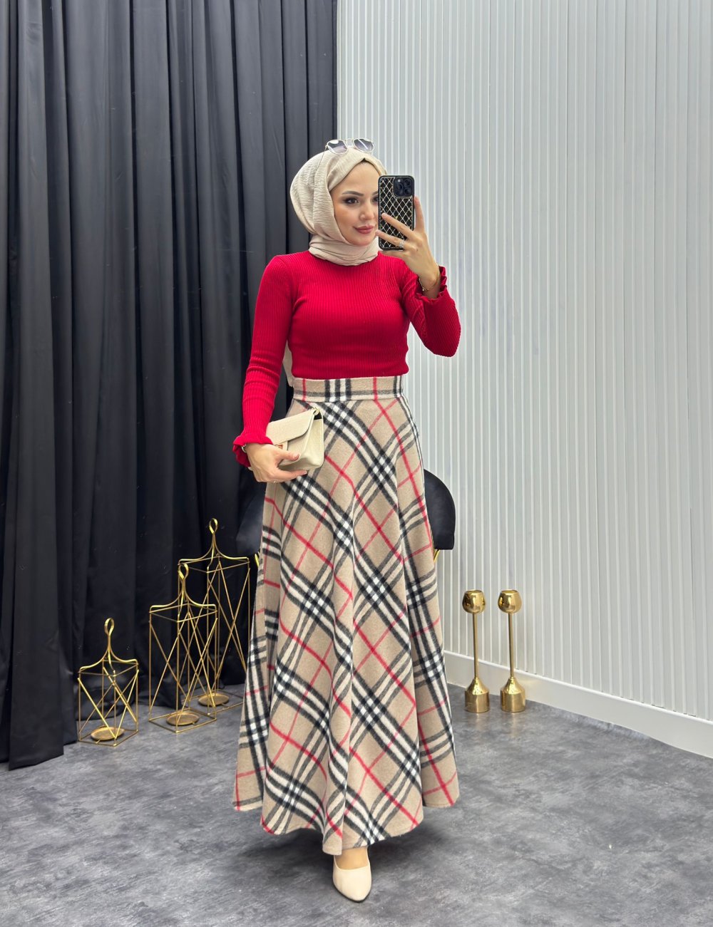 Ürünün Kumaşı:Etek 1. Sınıf kaşe kumaştan imal edilmiştir kazak triko kumaştan imal edilmiştir