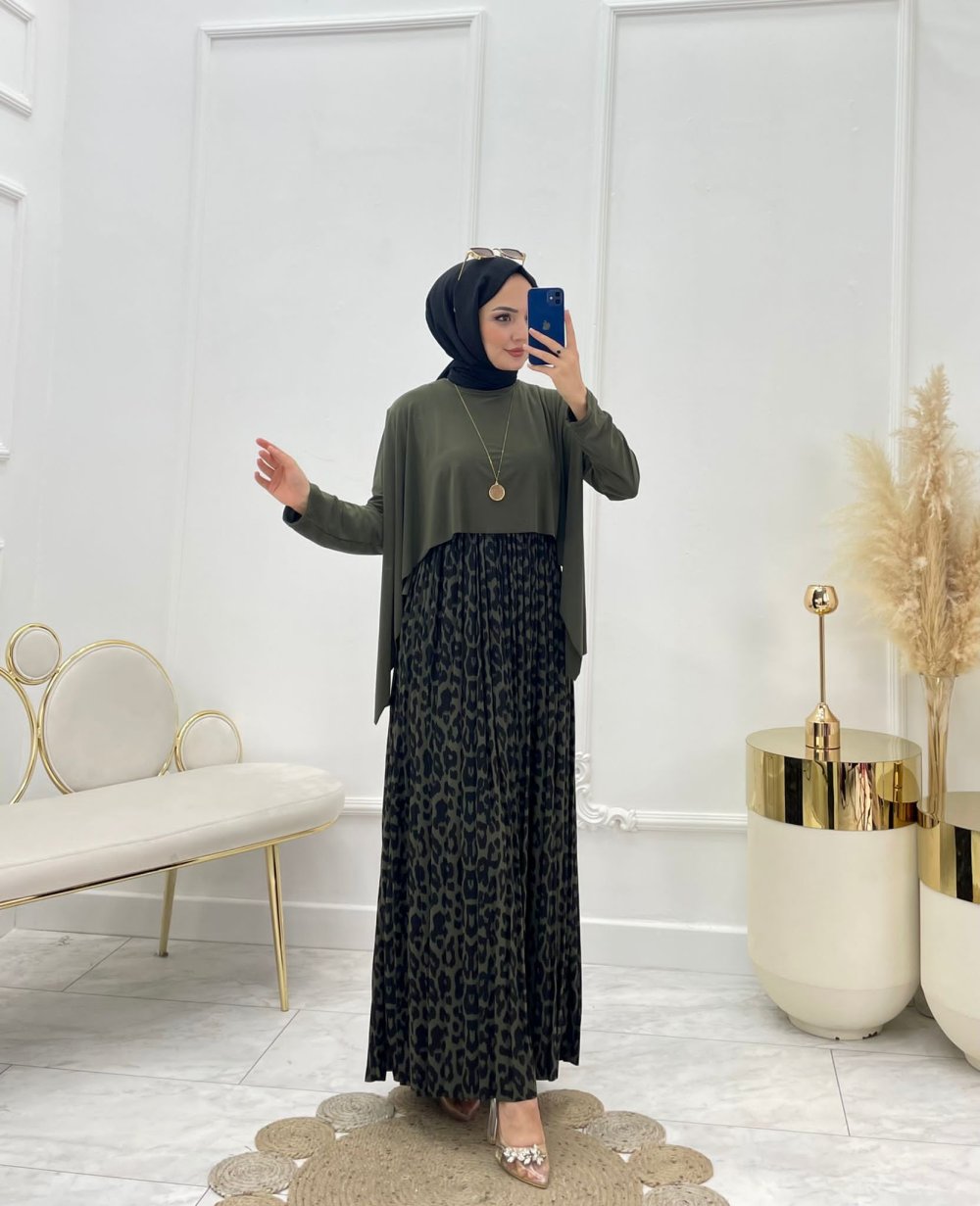 Bella Tesettür Elbise Haki