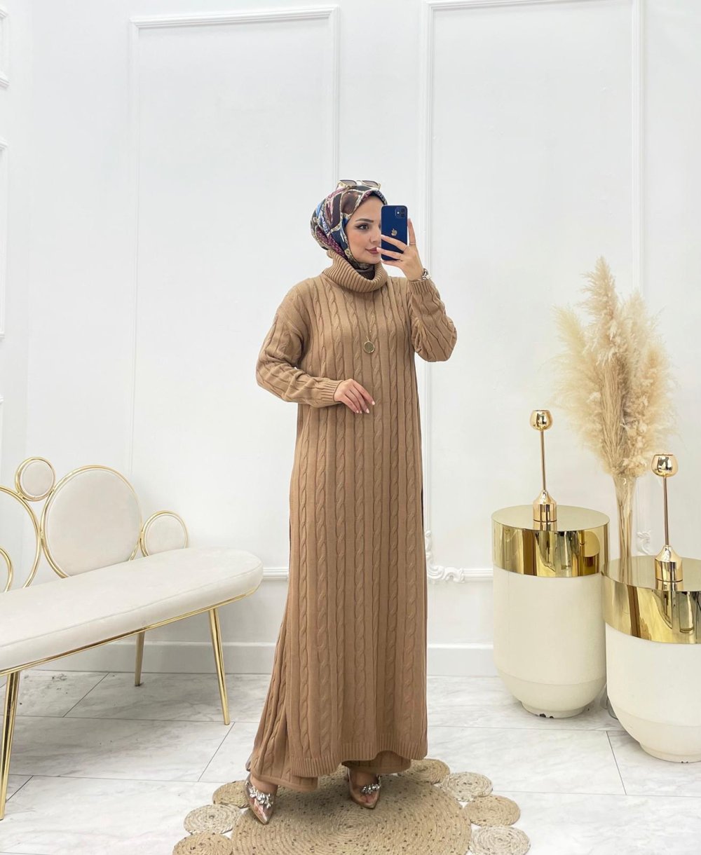 Ürünün Kumaşı ;1. Sınıf triko kumaş standart beden 36-46 beden arası uyumlu Ürünün Boyu ;tunik 125/130 cm pantolon 95/100 cm tunik yanlardan yırtmaçlı boğazlı pantolon beli lastikli Kışlık kullanima uygundur Ürün renginde konsept çekimlerinden dolayı ton farklılığı olabilir