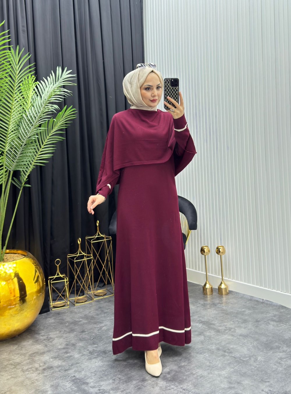 Canan Pelerinli Elbise Bordo