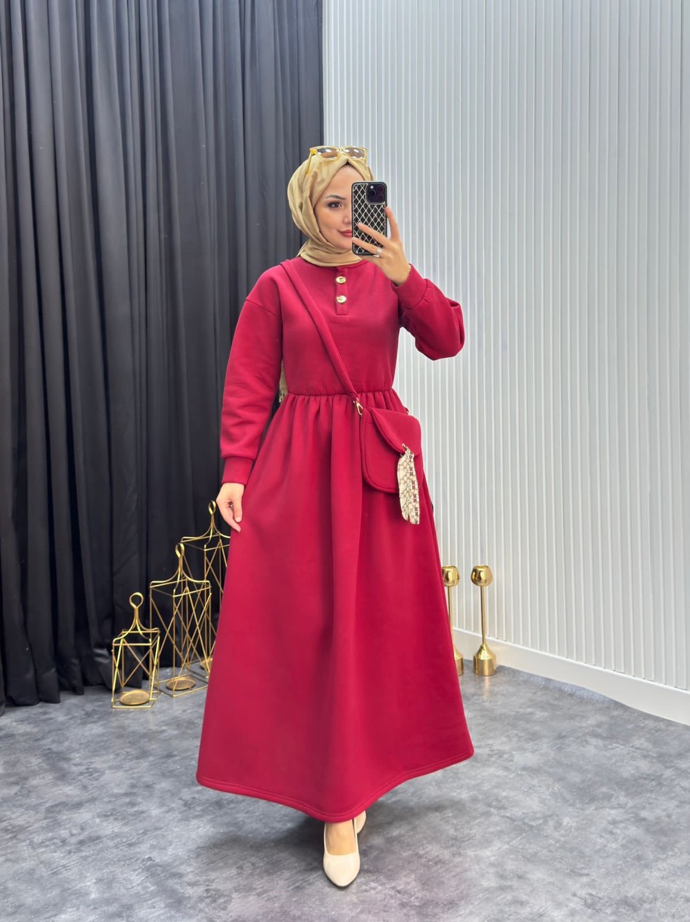 Çantalı Elbise Bordo