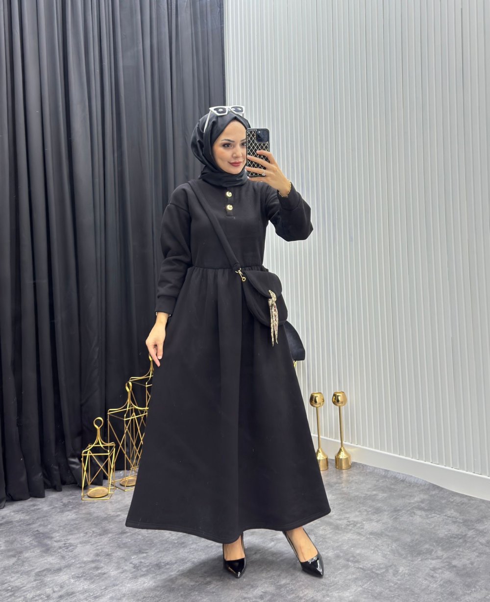 Çantalı Elbise Siyah