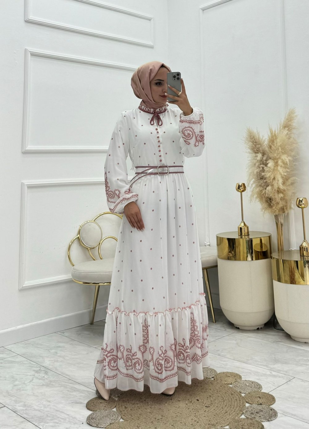 Ürünün Beden Aralığı ;38-40-42-44-46 Ürünün Kumaşı ;1. Sınıf ithal şifon kumaştan imal edilmiştir Ürünün Boyu ;135/140 cm ürün komple astarlı belden kemerlidir kemer ürüne dahildir Mankenin giydiği beden 38 bedendir Mevsimlik kullanima uygundur Ürün renginde konsept çekimlerinden dolayı ton farklılığı olabilir