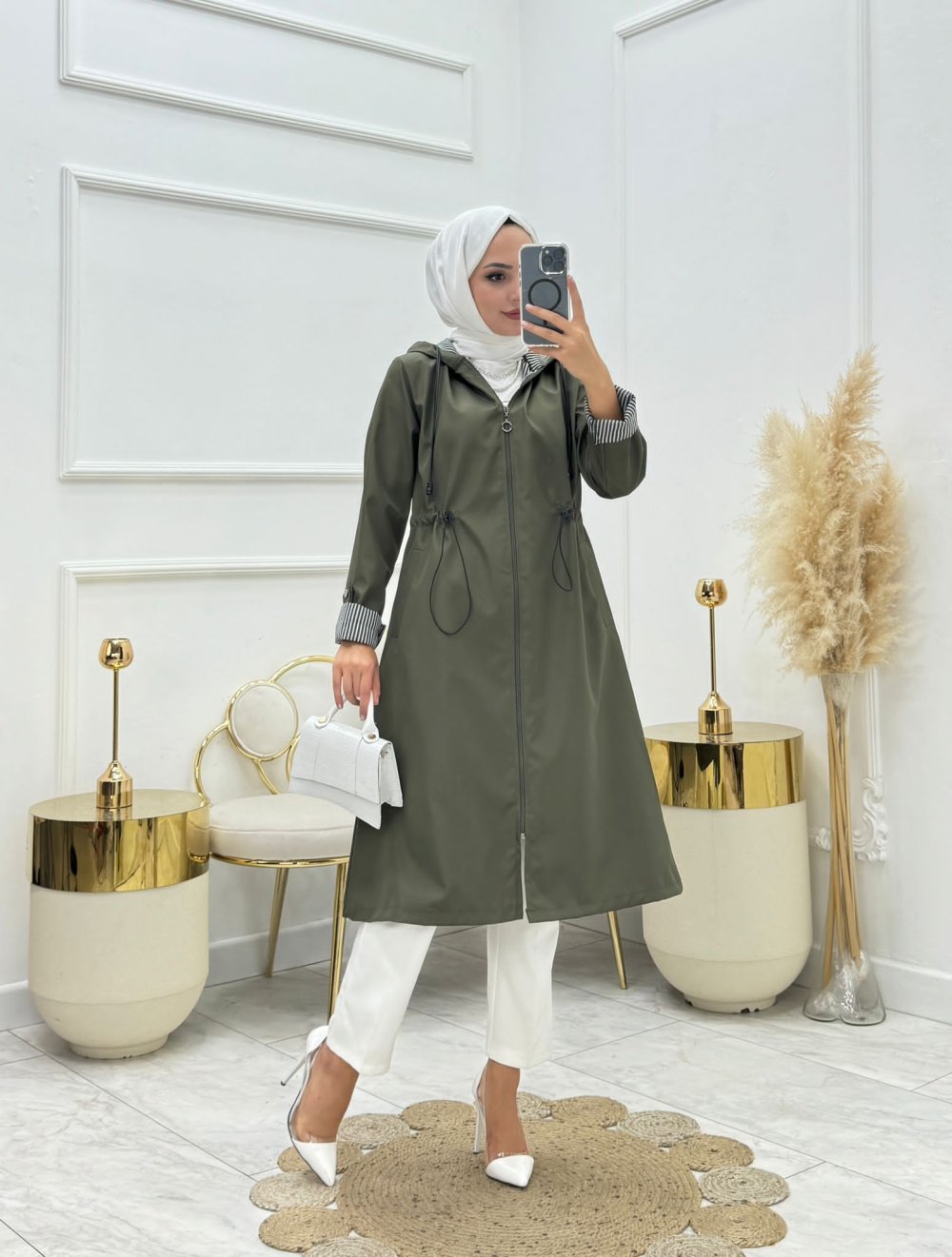 Ürünün Kumaşı ;38-40-42-44-46-48-50 Ürünün Kumaşı ;bondi kumaş Ürünün Boyu ;110/115 cm kendinden astarlı kapüşonlu belden ayarlanabilir bağcıklıdır Mankenin giydiği beden 38 bedendir Mevsimlik kullanima uygundur Ürün renginde konsept çekimlerinden dolayı ton farklılığı olabilir