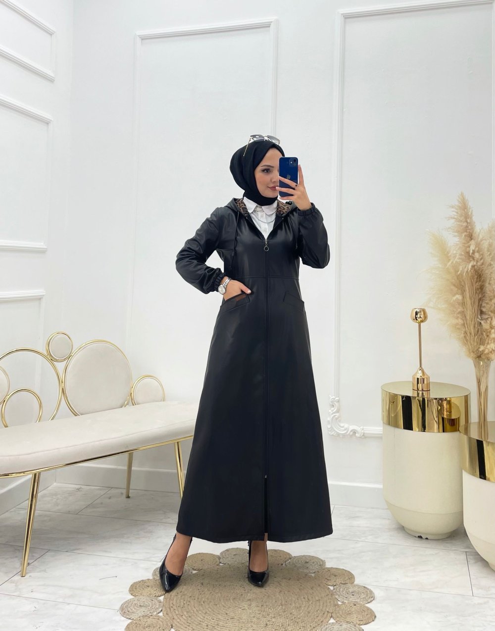 Ürünün Beden Aralığı ;38-40-42-44-46-48 Ürünün Kumaşı ;suni deri kumaş Ürünün Boyu ;130/135 cm önden fermuarlı kapüşonlu Mankenin giydiği beden 38 bedendir Mevsimlik kullanıma uygundur Ürün renginde konsept çekimlerinden dolayı ton farklılığı olabilir