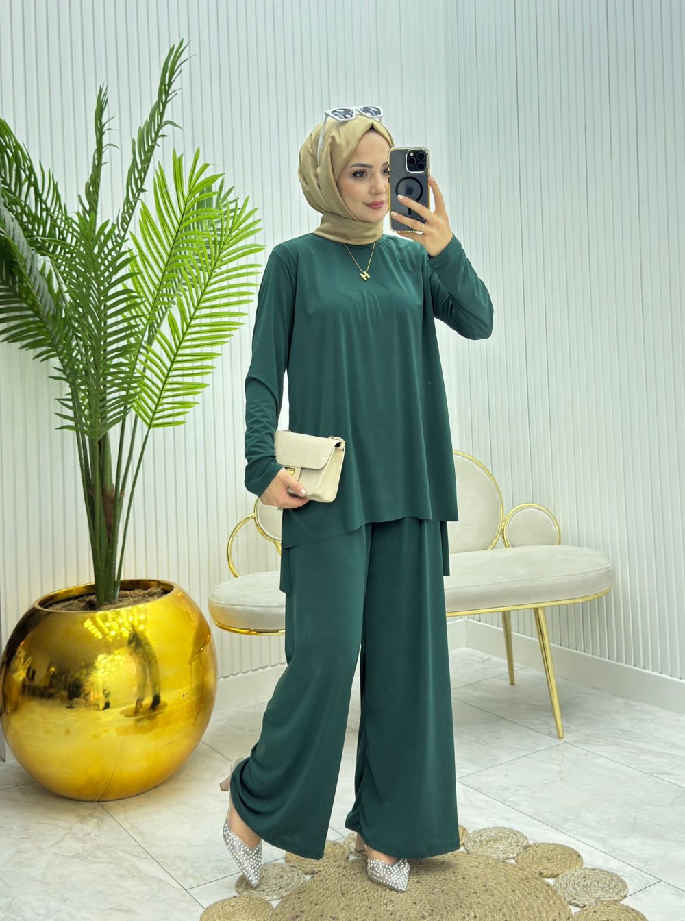 Tunik önü kısa arkası uzun modellerdendir. Pantolon beli lastikli olup çok rahat bir takımdır