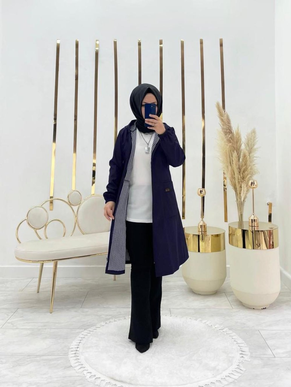 Elçin Tesettür Trenç Lacivert