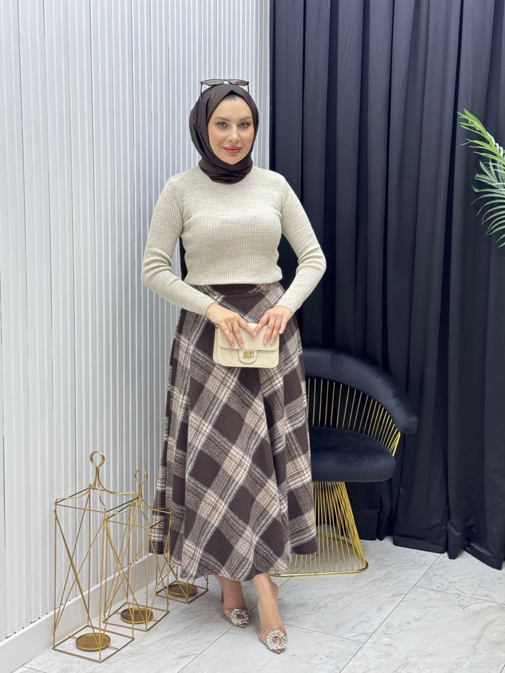 Ürünün Kumaşı:Etek 1. Sınıf kaşe kumaştan imal edilmiştir kazak triko kumaştan imal edilmiştir