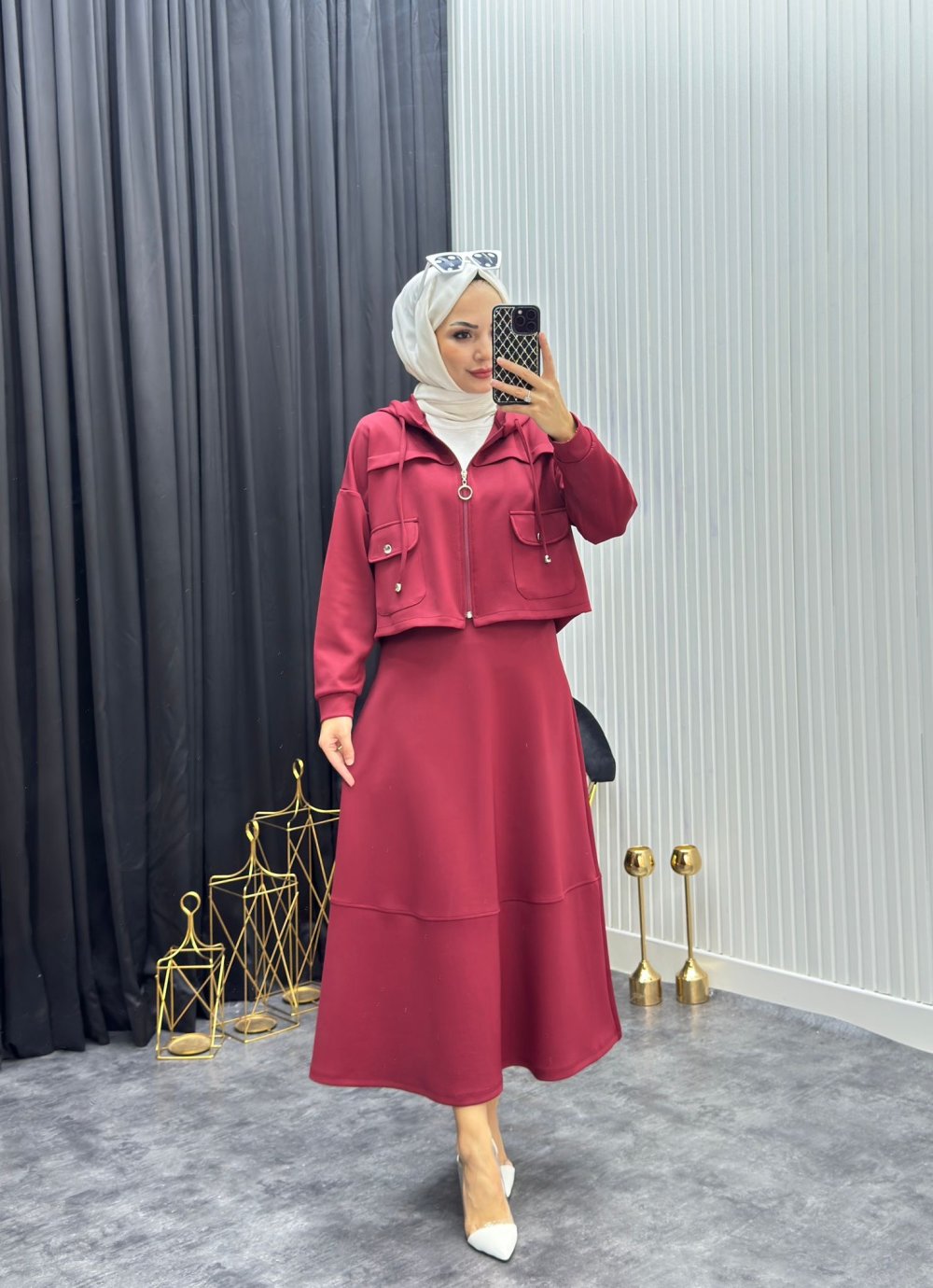 Crop ceket ve etek olmak üzere iki parçadan oluşmkatadır.