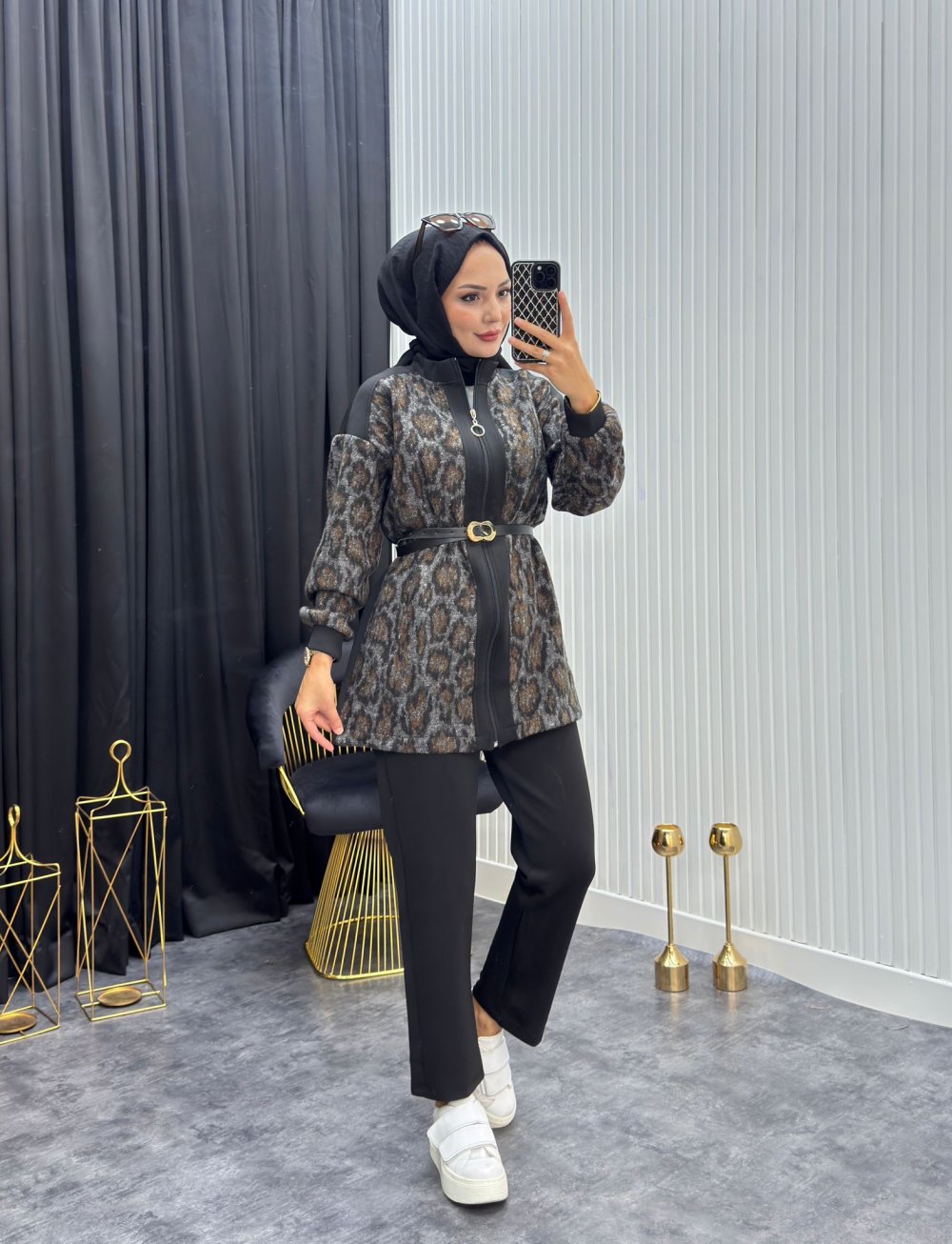 Leopar kumaş kısmı kaşe, düz kumaş kısmı dalgıç kumaştır