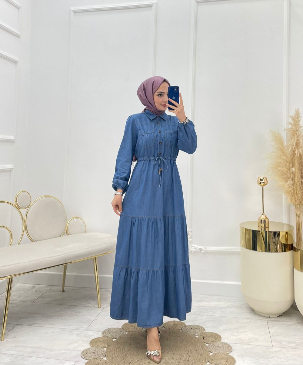 Ürünün Beden Aralığı :36-38-40-42-44-46-48 Ürünün Kumaşı ;tensel kot kumaş Ürünün Boyu :135/140 cm belden bağcıklı