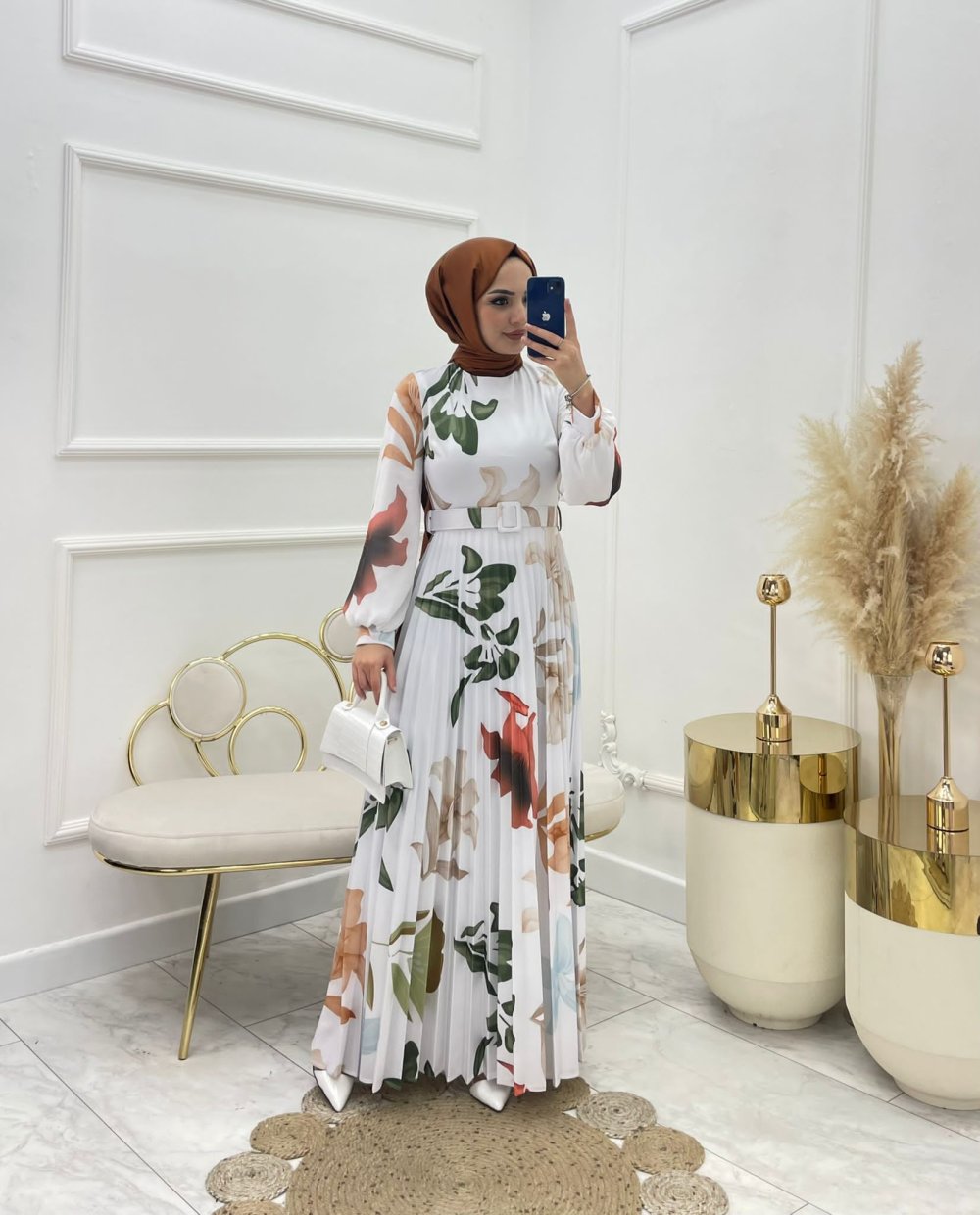 Ürünün Beden Aralığı ;36-38-40-42-44-46 Ürünün Kumaşı ;elbise likralı saten kumaş kollar astarlı şifon kumaş Ürünün Boyu ;135/140 cm piliseli kemerli arkadan fermuarlı Mankenin giydiği beden 38 bedendir Mevsimlik kullanima uygundur Ürün renginde konsept çekimlerinden dolayı ton farklılığı olabilir