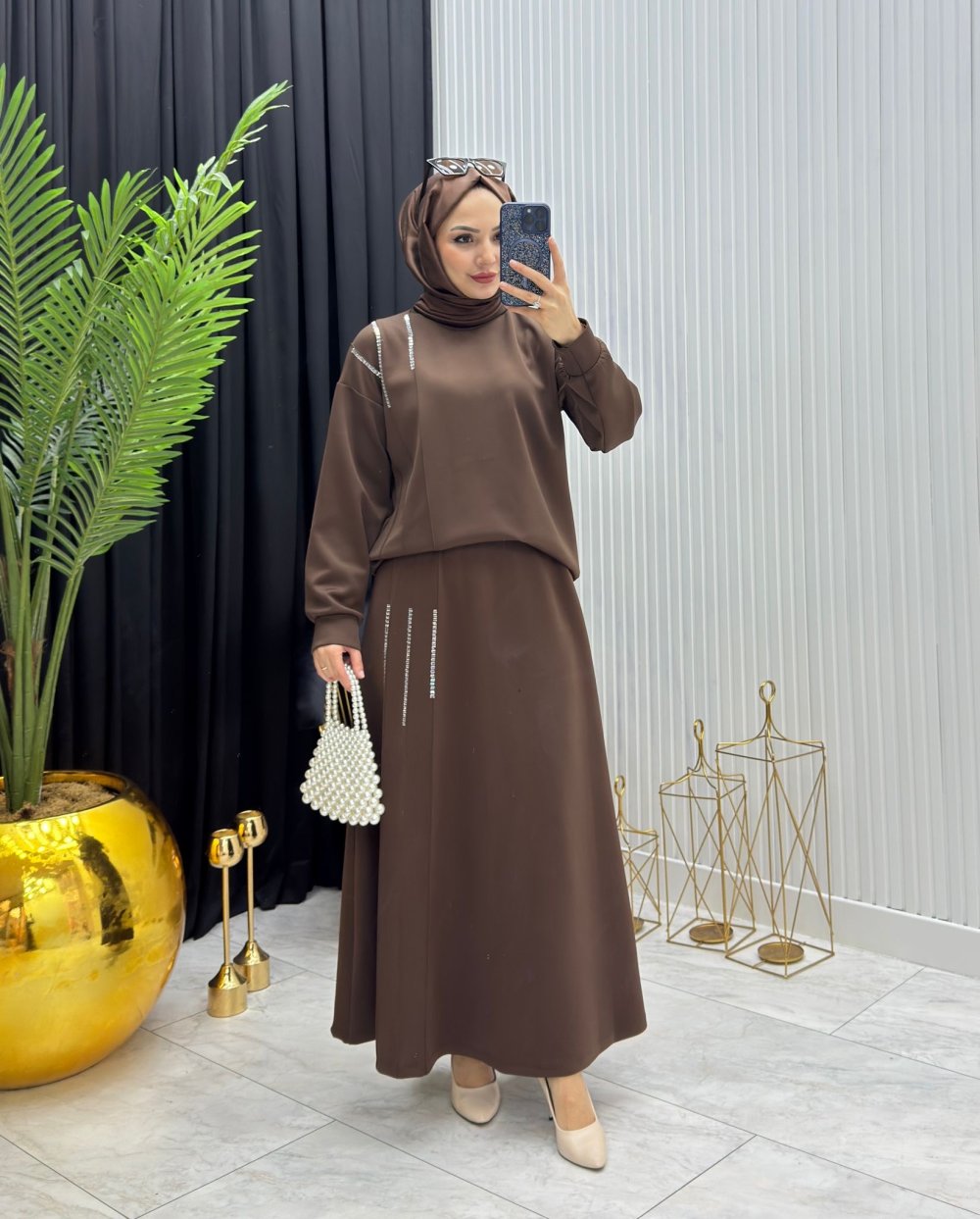 bluz ve etek taş detaylı etek beli lastiklidir etek 90/95 cm